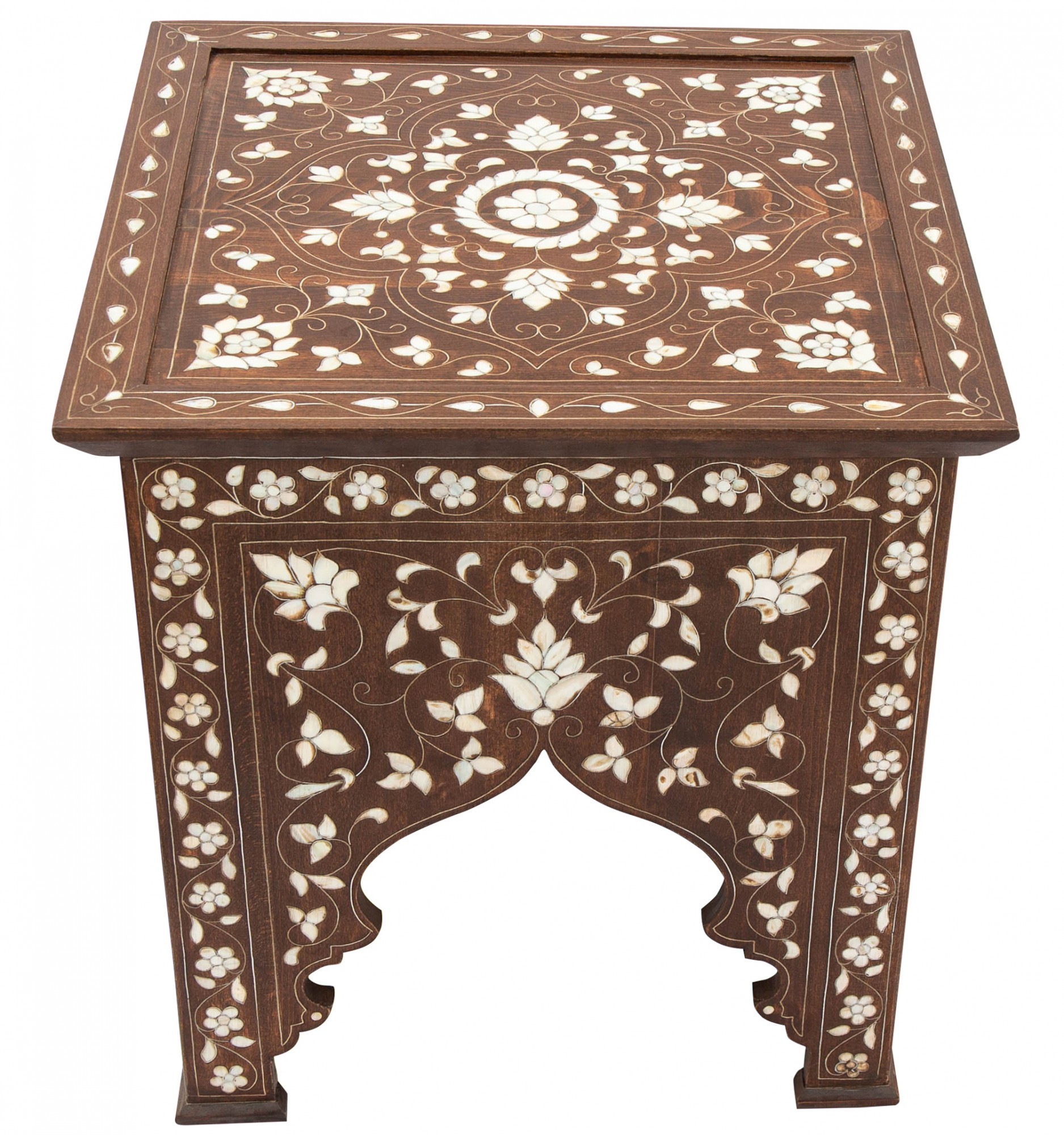 More than deserving of its name, which in Arabic means ‘skilful’ or ‘excellent’, our Haziq side table is a work of delicate beauty. Inlaid with a floral motif of mother-of-pearl petals linked with gossamer-thin stems of silver wire, the diffuse layout of the decoration allows the natural warmth of the beechwood to play a similarly significant part in the table’s delightful appeal.
