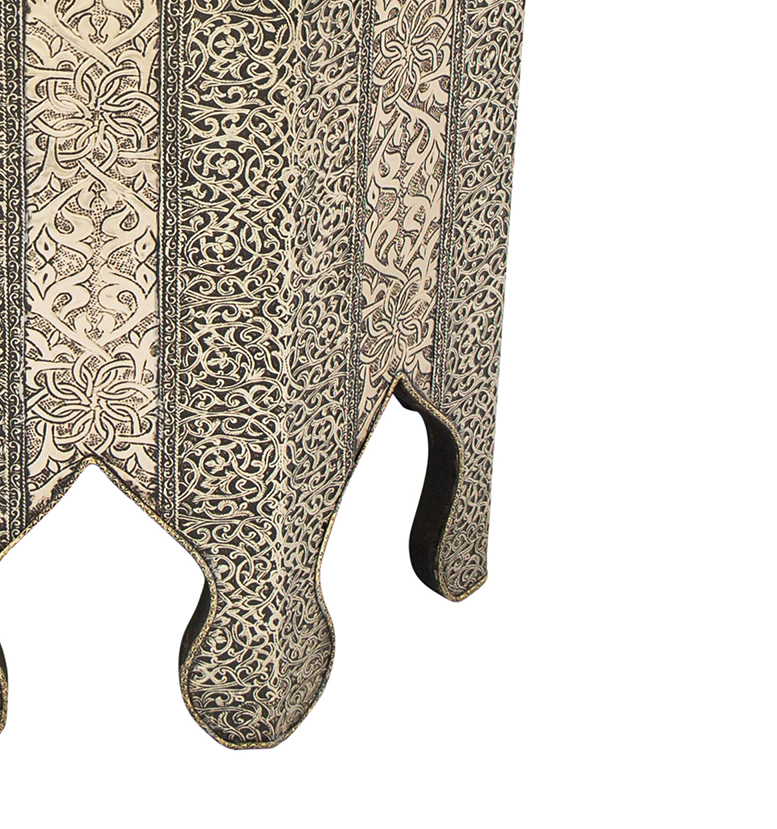 With its alternating panels of expertly hand-carved and hand-chiselled maillechort, our Kais side table displays two complementary motifs of intertwining tendrils and leaves. Rewarding closer inspection, it has the charm and presence to grace any room.